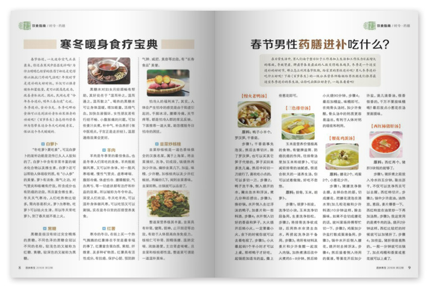 寒冬暖身食療寶典,春節(jié)臨近,一大波冷空氣正在襲來,你還在寒風中瑟瑟發(fā)抖嗎?為什么明明已經(jīng)穿的很厚了卻還是覺得難以抵抗門外的氣溫呢?年假時節(jié)是進補的大好時機,不僅可以強身健體積蓄能量,更可以提高免疫力,改善身體狀況。因此,民間也有“今年冬令進補,明年三春打虎”之說。冬季進補,食補當先。冬季吃哪些食物可以達到滋補身體祛寒強身的功效呢?《百歲養(yǎng)生》雜志特約營養(yǎng)師為您帶來適合冬天吃的暖身菜,保障這個冬天暖暖的。