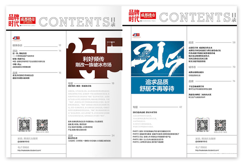 《成都樓市》雜志秉承客觀、公正、專業(yè)的服務(wù)原則,結(jié)合成都市房地產(chǎn)交易中心交易數(shù)據(jù)分析,為購房者提供近期的樓市行情報道。并以多方位的樓盤檢索、全景式購房地圖、客觀專業(yè)的樓盤點評和超大篇幅的樓盤個案信息幫助購房者輕松完成購房初選。