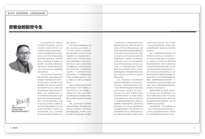 由中國(guó)銀行業(yè)協(xié)會(huì)理財(cái)業(yè)務(wù)專(zhuān)業(yè)委員會(huì)、私人銀行業(yè)務(wù)專(zhuān)業(yè)委員會(huì)、中國(guó)社科院財(cái)富管理中心、中國(guó)人民大學(xué)信托與基金研究所聯(lián)合指導(dǎo)出版,雜志內(nèi)容主要定位財(cái)富管理、高品生活和人文關(guān)懷。聚焦實(shí)時(shí)財(cái)富管理熱點(diǎn)及意見(jiàn),由國(guó)內(nèi)著名的經(jīng)濟(jì)學(xué)家從專(zhuān)業(yè)角度解讀事件本質(zhì)。