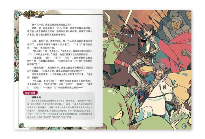 《創(chuàng)想大王》月刊,單期52頁,《創(chuàng)想大王》雜志以明溪小學科學社的4位成員參加“創(chuàng)想大王”比賽為背景,將科學知識、融入到充滿懸念的闖關(guān)游戲故事中。