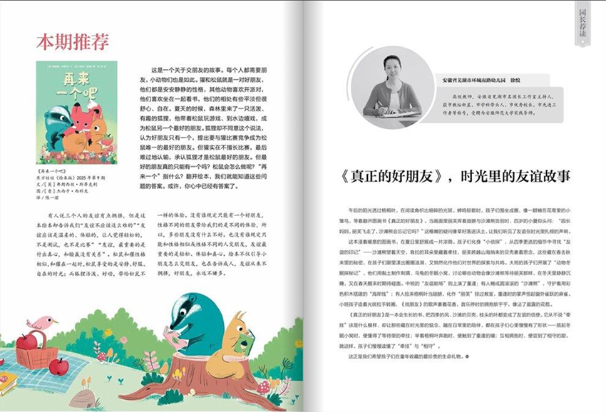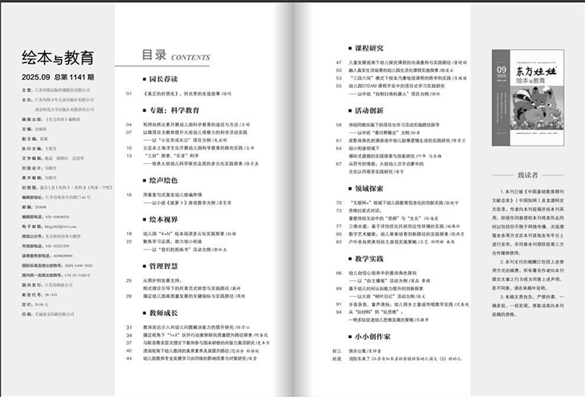 雜志聚焦3-6歲幼兒發(fā)展需求,嚴格遵循學前教育五大領域(健康、語言、社會、科學、藝術)的發(fā)展目標,設置了“小茶聊讀書”“課程故事”“教育探索”“小小創(chuàng)作家”等核心欄目。其中“課程故事”欄目通過真實教學案例解析繪本與課程的融合路徑,“教育探索”板塊則邀請國內外幼教專家探討前沿教育理念,而“小小創(chuàng)作家”欄目鼓勵幼兒發(fā)揮想象力,將閱讀體驗轉化為創(chuàng)意表達,實現(xiàn)從“讀繪本”到“用繪本”的價值延伸。