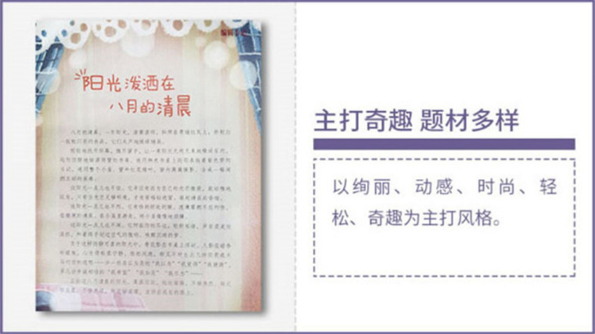 《讀友·少年文學》,創(chuàng)刊于1992年,期望通過自身在傳播領(lǐng)域的資源優(yōu)勢,給我們帶來高品質(zhì)生活,紙張開本:32開,國內(nèi)刊號:CN:44-1551/Z。擁有眾多國內(nèi)一流的原創(chuàng)插畫作者,如苜暖,卡小N,小黑牙,發(fā)木杈,三水。插畫風格豐富多變,能夠根據(jù)作品的不同體裁和內(nèi)容創(chuàng)作出風格各異的插畫作品,帶給讀者絢爛多彩、別具一格的審美享受。