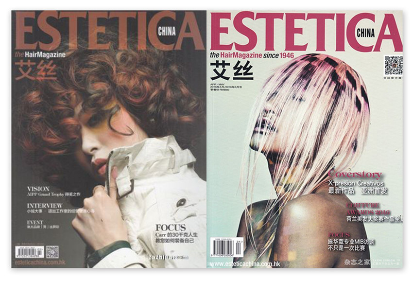 《ESTETICA CHINA 艾絲》雜志于2004年在中國(guó)出版, 除不斷提供全球頂尖發(fā)型師的新創(chuàng)作,還給予讀者真正國(guó)際性一級(jí)時(shí)尚發(fā)型概覽,獨(dú)有的專(zhuān)業(yè)資訊以及具備極高質(zhì)素的出版設(shè)計(jì)、攝影創(chuàng)作等。