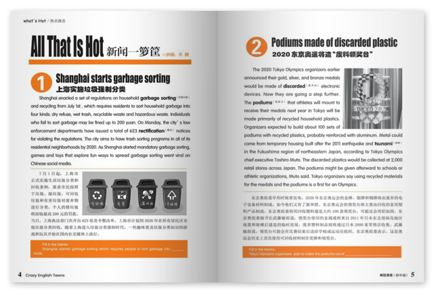 《瘋狂英語(yǔ)初中版》主要欄目:熱點(diǎn)直擊、口試演習(xí)場(chǎng)、快樂(lè)學(xué)堂、學(xué)有其法等。
