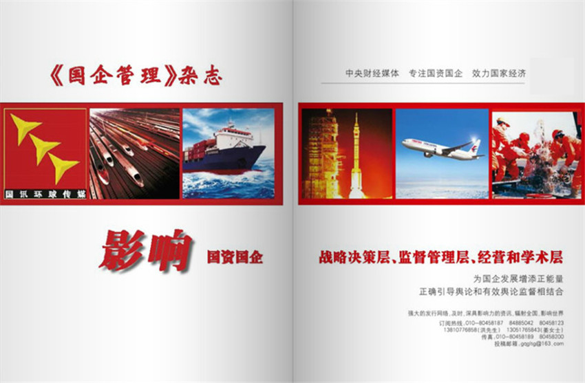 《國企管理》雜志由國務(wù)院國資委主管的中國輕工業(yè)聯(lián)合會和中國企業(yè)管理研究會、中國輕工業(yè)出版社、國訊環(huán)球傳媒共同主辦和出版、發(fā)行。作為國內(nèi)外公開發(fā)行的大型媒體,《國企管理》直遞黨和國家領(lǐng)導(dǎo)人、相關(guān)部委。創(chuàng)刊于2014年,期望通過自身在傳播領(lǐng)域的資源優(yōu)勢,給我們帶來高品質(zhì)生活,紙張開本:16開,國內(nèi)刊號:CN:10-1224/F。