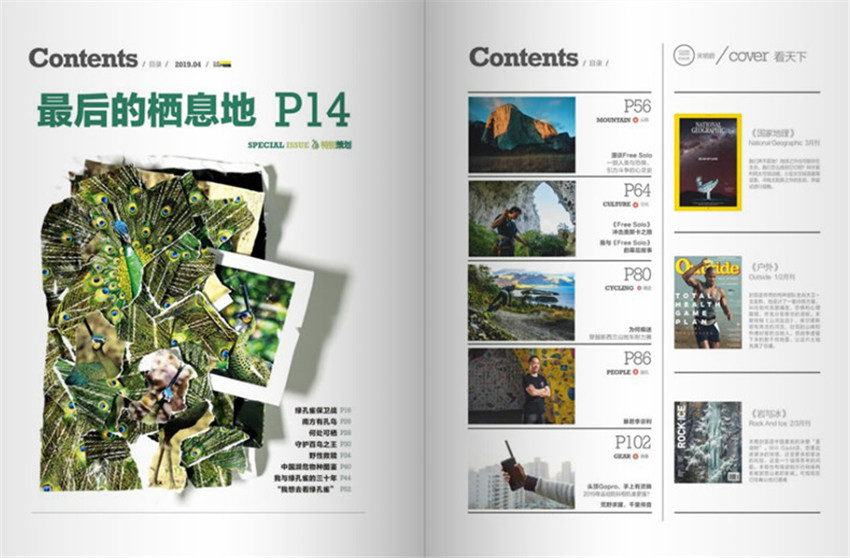 《運動休閑·戶外探險》主要欄目:特別策劃、專門玩法、探險之旅、自游自在、行者文摘、戶外人生、穿越手記、人車生活、先睹為快、裝備等。