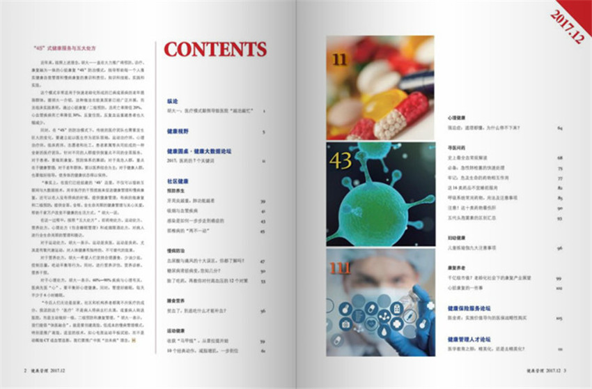 《健康管理》主要欄目:健康視野、健康圓桌、健康大數(shù)據(jù)論壇、社區(qū)健康、健康保險服務(wù)論壇、健康管理人才論壇。