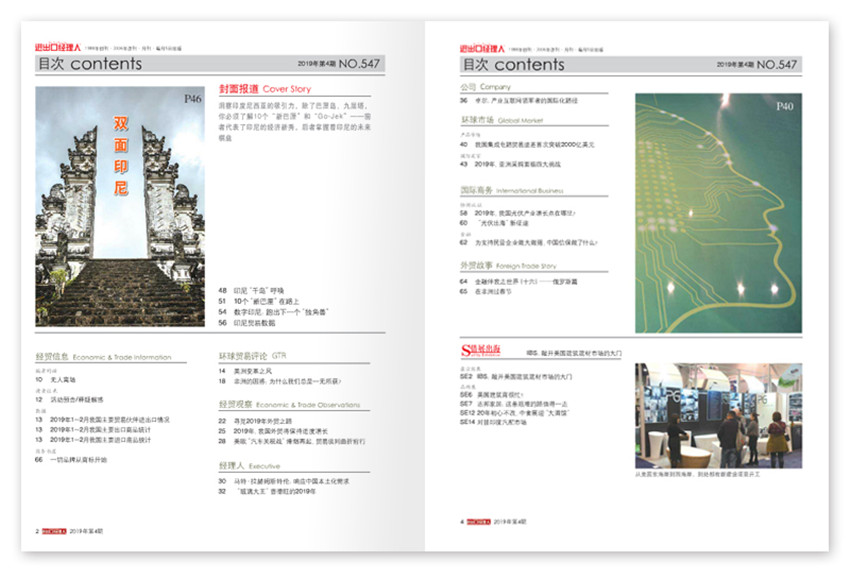 《進(jìn)出口經(jīng)理人》主要欄目:出口基地、經(jīng)貿(mào)信息、經(jīng)貿(mào)觀察、環(huán)球市場(chǎng)、等。