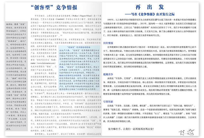 《競爭情報(bào)》創(chuàng)辦于2004年,雙月刊,單期68頁,《競爭情報(bào)》國內(nèi)一本專注競爭情報(bào)的雜志,以“交流研究成果,提高學(xué)術(shù)水平;推廣方法工具,服務(wù)產(chǎn)業(yè)企業(yè);普及情報(bào)思維,提升信息素養(yǎng)”為辦刊宗旨。