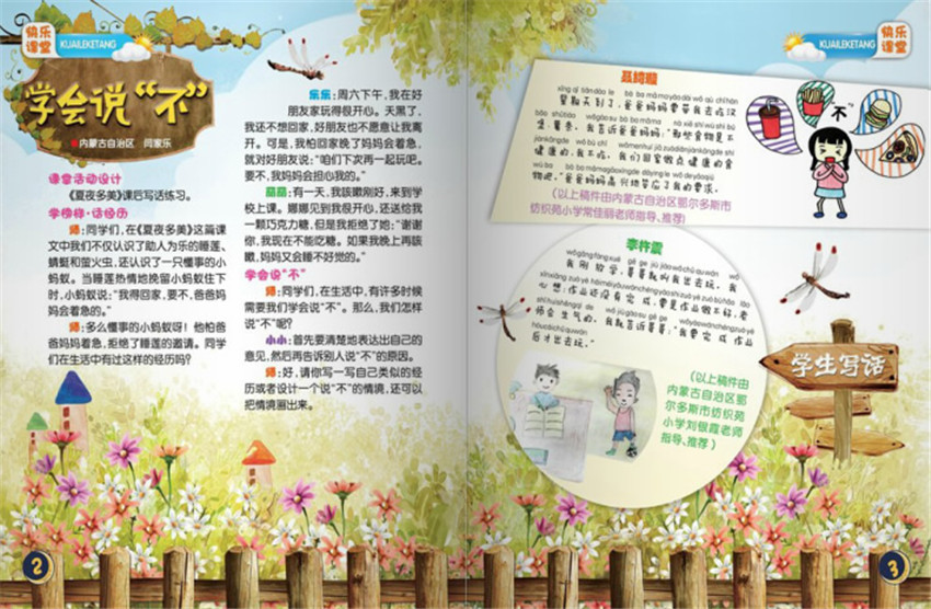 《快樂作文》“快樂課堂”欄目緊密配合“人教版”“冀教版”“蘇教版”等各版本教材中的作文訓(xùn)練內(nèi)容,與作文教學(xué)同步,內(nèi)容體現(xiàn)教學(xué)過程和教法、學(xué)法,使學(xué)生高高興興、輕輕松松學(xué)作文。