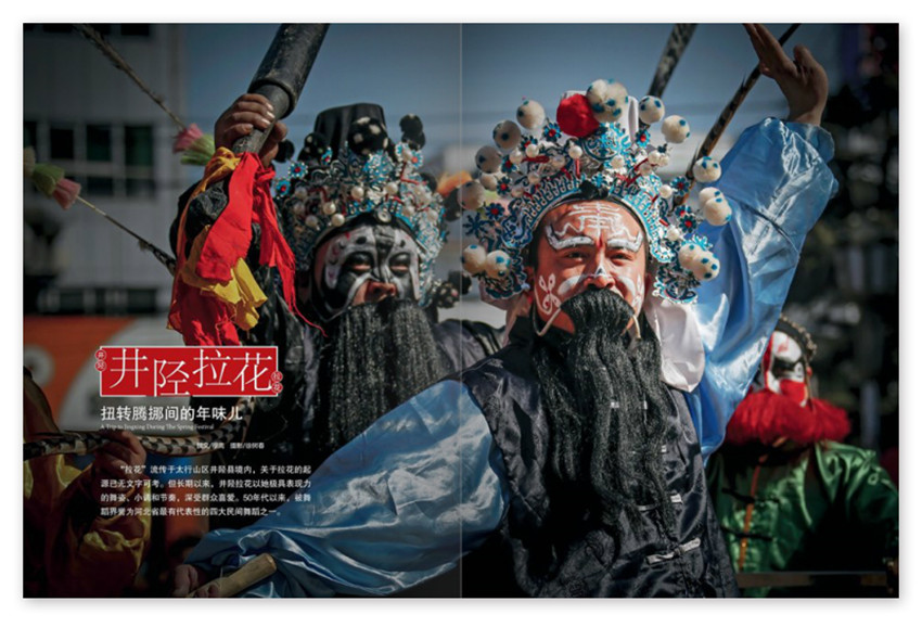 井陘拉花,“上到九十九,下到剛會走,井陘拉花遍地扭”。還沒到井陘,就先聽到了這樣一句話,可見,井陘拉花在當?shù)厝酥械钠占俺潭冉^非一般。以往來石家莊,都是在四五月左右,這里的天氣比起我的家鄉(xiāng),總是要熱上幾分。而這一次的冬季井陘之旅,雖沒有四五月時的似火驕陽,卻激發(fā)了我如同井陘拉花一般的火熱激情。井陘拉花,用她獨特的趣味與熱情喚起我心中的濃濃年味兒。