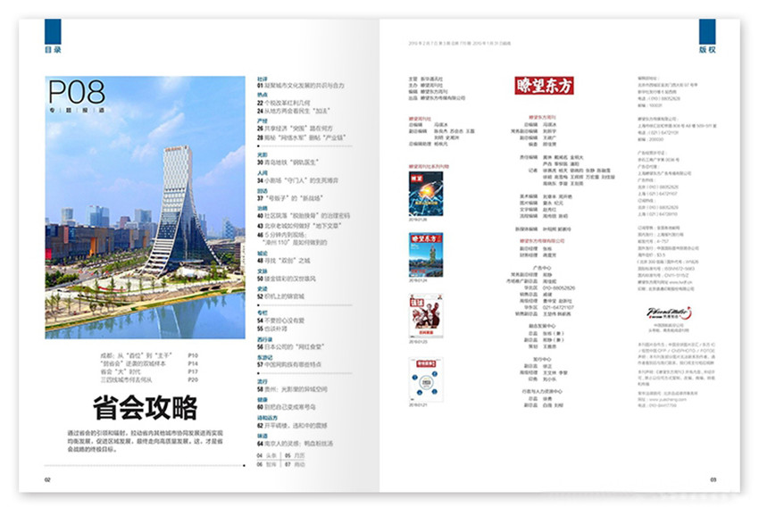 《瞭望東方周刊》,創(chuàng)刊于2003年,期望通過自身在傳播領(lǐng)域的資源優(yōu)勢,給我們帶來高品質(zhì)生活,紙張開本:16開,國內(nèi)刊號:CN:11-5115/Z。注重第一時間解讀中國高層決策背景,從新興階層讀者關(guān)注的角度切入,深層次報道重大政治、經(jīng)濟、社會新聞,努力用新的表述方式提供有效價值含量高的信息和分析。