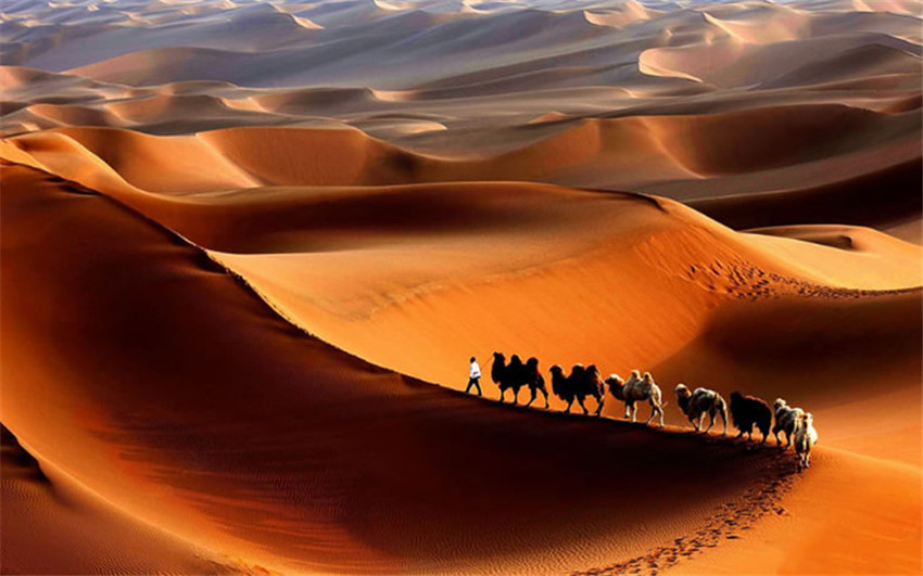 塔克拉瑪干沙漠位于新疆南疆的塔里木盆地中心,是中國(guó)較大的沙漠,也是世界第十大沙漠,同時(shí)亦是世界第二大流動(dòng)沙漠。這里,金字塔形的沙丘屹立于平原以上300米。狂風(fēng)能將沙墻吹起,高度可達(dá)其3倍。沙漠里沙丘綿延,受風(fēng)的影響,沙丘時(shí)常移動(dòng)。沙漠里亦有少量的植物,其根系異常發(fā)達(dá),超過(guò)地上部分的幾十倍乃至上百倍,以便汲取地下的水分,那里的動(dòng)物有夏眠的現(xiàn)象。