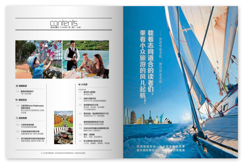 一本專門為旅游愛好者準(zhǔn)備的旅游信息雜志,在這里,您可以找到讓你心動的旅游目的地,也可以發(fā)現(xiàn)適合自己的旅游方式,同樣,您還可以為家人選擇一個充滿樂趣的度假產(chǎn)品,緊抓“旅游”與“信息”兩大主題,針對讀者對旅游度假產(chǎn)品的實(shí)際需求,將可讀性、指導(dǎo)性、可操作行、服務(wù)性融為一體。