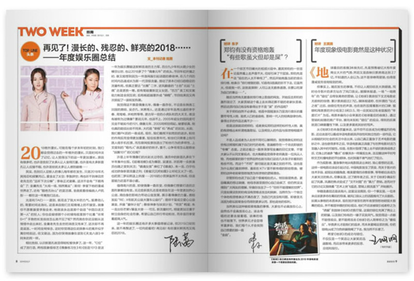 《南都娛樂周刊》創(chuàng)辦于2006年,半月刊,單期70頁,《南都娛樂周刊》,中國富原創(chuàng)精神和人文情懷的高端娛樂雜志,中國具娛樂精神的原創(chuàng)新聞周刊,中國具影響力的娛樂新聞周刊,是都市高端人群張揚(yáng)個性、舒緩壓力、獲取智慧的心靈讀物。