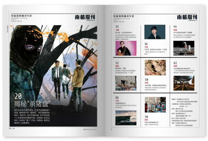 《南都周刊》創(chuàng)辦于1949年,月刊,單期86頁,《南都周刊》以城市為關(guān)注對象的新聞雜志,既要呈現(xiàn)鮮活的城市新聞,又要避免過度的煽情和批判,體現(xiàn)一個成熟主流的媒體應(yīng)有的理性客觀。