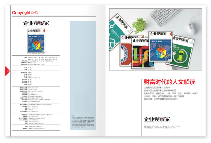 《企業(yè)觀察家》雜志聚焦經(jīng)濟(jì)動(dòng)態(tài),揭示深層財(cái)經(jīng)問題,交流企業(yè)界經(jīng)營管理之道,反映企業(yè)界豐富人生,書寫企業(yè)家智慧,搭建中國企業(yè)發(fā)展智庫。,弘揚(yáng)市場人文關(guān)懷,在激勵(lì)人們創(chuàng)造、追求財(cái)富的同時(shí),倡導(dǎo)有價(jià)值的商業(yè)文明和商業(yè)精神,建設(shè)中國企業(yè)的商業(yè)規(guī)則和商業(yè)價(jià)值體系。