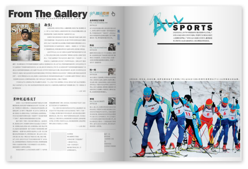 《全體育》雜志是《體壇周報》旗下一本帶有鮮明娛樂與時尚風格的體育月刊,現(xiàn)已成為中國影響力較大的綜合體育雜志。