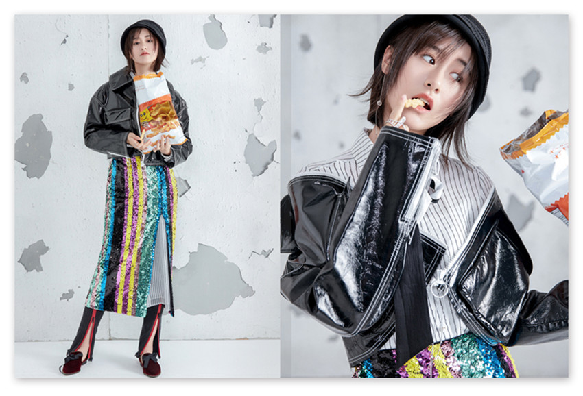 主題拍攝現(xiàn)場,金晨毫無偶像包袱,反復(fù)與編輯和造型師商議如何造型、如何化妝,為拍攝做足準(zhǔn)備。她笑稱:“我非常喜歡目前的狀態(tài),累并快樂著,過好現(xiàn)在就是一件很美的事。”在封面拍攝現(xiàn)場,纖瘦的童瑤表現(xiàn)出充沛的精力與鏡頭駕馭能力。