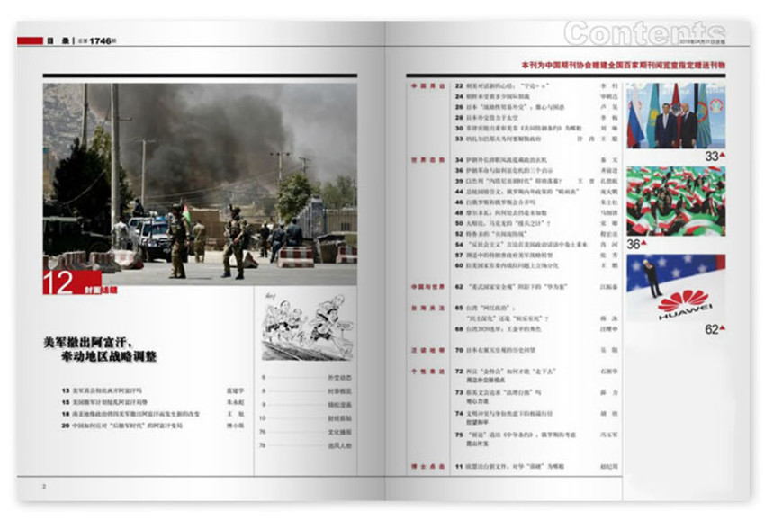 《世界知識(shí)》創(chuàng)辦于1934年,半月刊,單期86頁(yè),《世界知識(shí)》雜志是中國(guó)具性的國(guó)際時(shí)政與中國(guó)外交報(bào)道及評(píng)論性期刊以國(guó)際化的高度和視野,平實(shí)、理性、客觀、地深入報(bào)道和評(píng)論國(guó)際時(shí)政態(tài)勢(shì)、世界經(jīng)濟(jì)熱點(diǎn)、重大新聞事件與人物、中國(guó)外交動(dòng)向及成就。