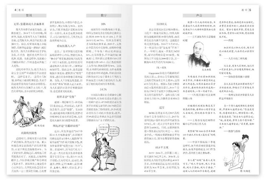 每期從1萬余種書報刊中精選文章,對當前的熱點事件進行深度披露,對各類社會現(xiàn)象展開多角度探析,對新鮮觀點與爭鳴作系統(tǒng)介紹,對紛繁復雜的人生作哲理性思考,內容涉及社會、人生、人物、文史、海外等各類經(jīng)典文章,傳遞有關為人、立世、創(chuàng)業(yè)、發(fā)展的不朽價值,是你行走社會的生存讀本。