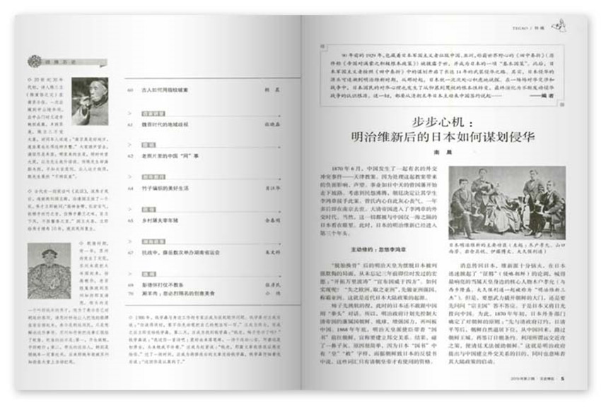 《文史博覽》創(chuàng)辦于1960年,月刊,單期72頁,《文史博覽》雜志以刊登歷史當(dāng)事人的“親歷、親見、親聞”史料為主,從多種角度介紹近現(xiàn)代歷史知識(shí),其內(nèi)容涉及政治、經(jīng)濟(jì)、軍事、科技、文教、民族、宗教、華僑以及社會(huì)各個(gè)方面。