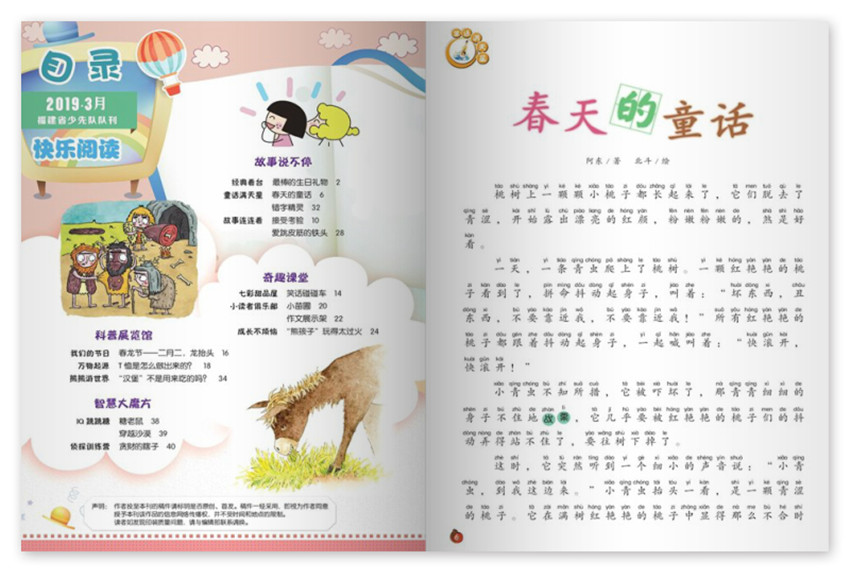 《小火炬》用圖文故事,介紹成語、漢字、詩詞、文化常識(shí)等貼近孩子生活學(xué)習(xí)小知識(shí),很有趣味,可以不知不覺漲知識(shí);而且雜志文章有注音,讀起來輕松不累,還會(huì)在文章里特別標(biāo)注生字,既可以輔導(dǎo)語文學(xué)習(xí),也可以激發(fā)孩子獨(dú)立閱讀的興趣。