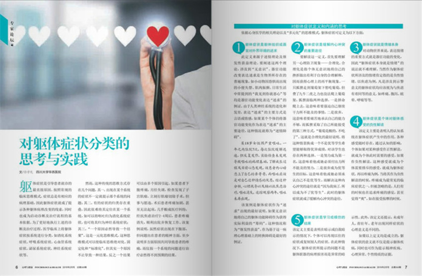 《心理與健康》創(chuàng)辦于1994年,月刊,單期80頁(yè),《心理與健康》雜志是中國(guó)科協(xié)主管,中國(guó)心理衛(wèi)生協(xié)會(huì)主辦的國(guó)家級(jí)心理科普雜志。創(chuàng)刊23年來(lái),一直以提高我國(guó)人口心理健康素質(zhì)、增進(jìn)大眾心身健康為宗旨,并以其較強(qiáng)的知識(shí)性、指導(dǎo)性和實(shí)用性贏得了眾多讀者的喜愛(ài)。
