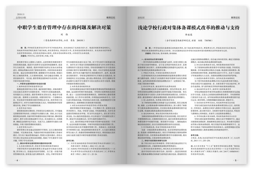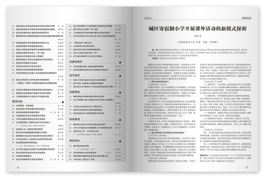 《新校園》雜志以“傳播教改理念,貼近教學實踐,指導教學創(chuàng)新,服務教師成長”為辦刊宗旨。