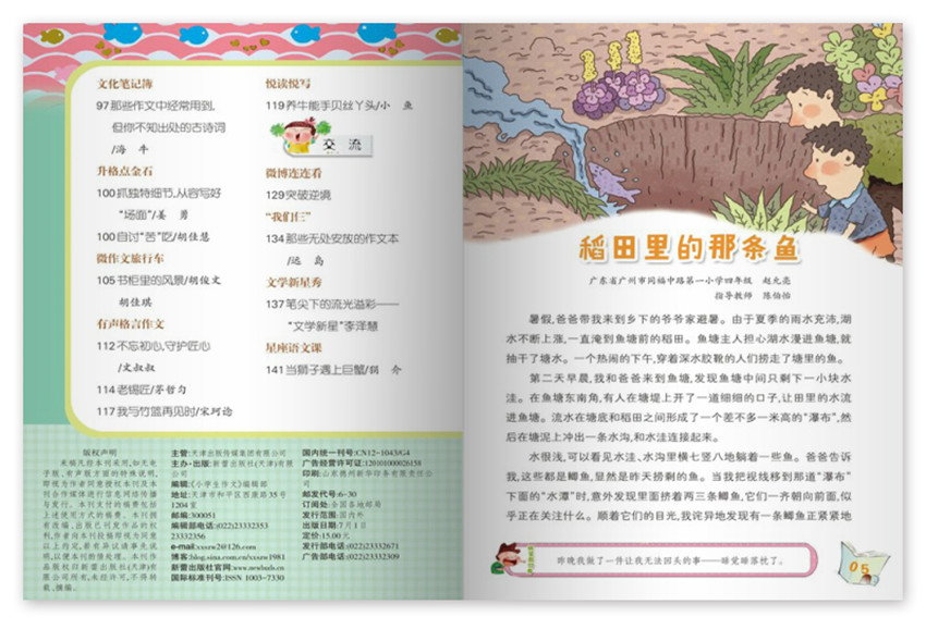 《小學(xué)生作文》,創(chuàng)刊于1981年,期望通過自身在傳播領(lǐng)域的資源優(yōu)勢,給我們帶來高品質(zhì)生活,紙張開本:32開,國內(nèi)刊號:CN:12-1043/G4。欄目新穎、形式活潑,文字清新,深受廣大專家、家長和小讀者的喜愛,這里有精彩的原創(chuàng)佳作,這里有點穴的名師講評,這里有實用的寫話指導(dǎo),這里有豐富的互動課堂……