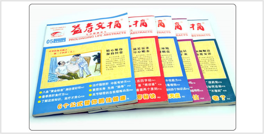 《益壽文摘》,創(chuàng)刊于1987 年,期望通過自身在傳播領(lǐng)域的資源優(yōu)勢,給我們帶來高品質(zhì)生活,紙張開本:80開,國內(nèi)刊號:CN:34-0042。益壽文摘一養(yǎng)生箴言:頭要常涼,腳要常熱。榮辱不驚,肝木自寧。動靜相濟,心火自定。飲食有節(jié),脾土自和。調(diào)息寡言,肺金自全,恬淡少欲,腎水自足。