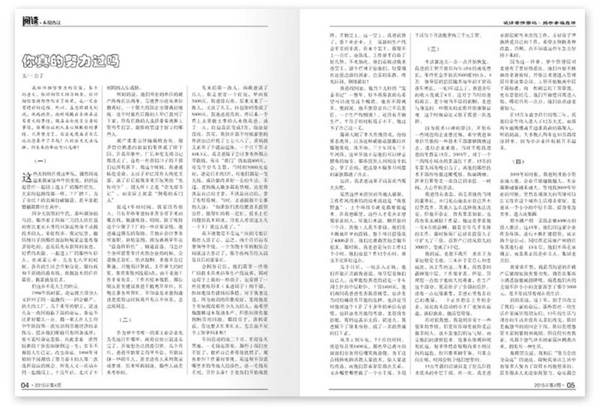 《閱讀》創(chuàng)辦于2005年,單期80頁,《閱讀》雜志是由新校園雜志社出版,苦情雜志,性格雜志,內(nèi)容涵蓋文學(xué)、經(jīng)濟(jì)、歷史、哲學(xué)等方面,引導(dǎo)讀者“閱苦中情,讀情中人”。