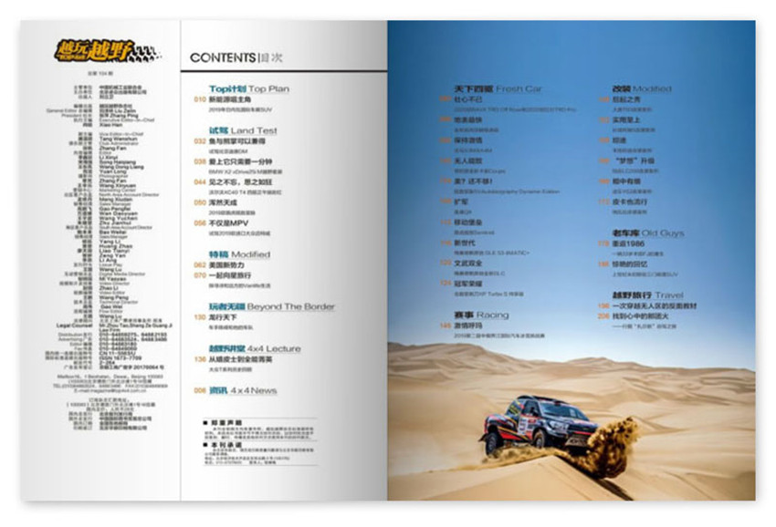 《越玩越野》創(chuàng)辦于2006年,雙月刊,單期216頁,《越玩越野》是中國內(nèi)地及時本專門介紹越野車、SUV等四驅(qū)車以及周邊產(chǎn)業(yè)為主的汽車雜志,以越野車、SUV技術(shù)、越野文化、越野事件與產(chǎn)品信息為主要內(nèi)容,融越野知識、文化、應用、購車及相關(guān)時尚生活于一體。