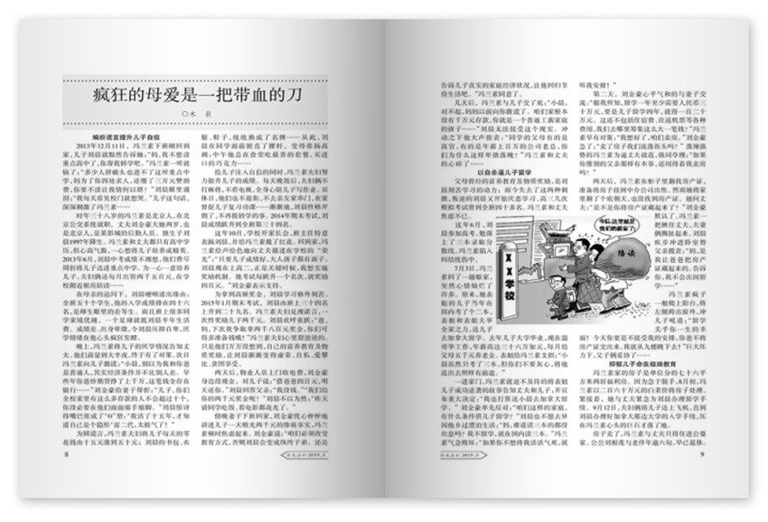 瘋狂的母愛是一把帶血的刀,編織謊言提升兒子自信,2013年12月11日,馮蘭素下班剛回到家,兒子劉晨就黯然告訴她:“媽,我不想讀重點高中了,你幫我轉(zhuǎn)學吧。”馮蘭素一聽就惱了:“多少人擠破頭也進不了這所重點中學,媽為了你四處求人,還繳了三萬元贊助費,你要不讀讓我情何以堪?”劉晨眼里涌淚:“我每天看見校門就想哭。”