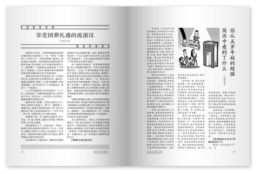 《雜文選刊》,創(chuàng)刊于1988年,期望通過自身在傳播領域的資源優(yōu)勢,給我們帶來高品質(zhì)生活,紙張開本:16開,國內(nèi)刊號:CN:22-1281/I。以“針砭時弊、批評世俗、反思歷史、解讀人生”的定位,“公正深刻、辛辣幽默、雅俗共賞、生動鮮活”的風格吸引著不同年齡、不同職業(yè)、不同愛好的讀者,被廣大讀者譽為“人生寶典”、“真話講壇”、“風雨中的玫瑰”。