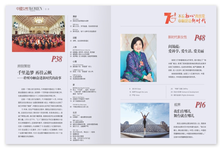 《中國女性》主要欄目:漫讀、人物、心情、生活等等。