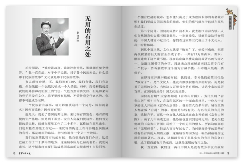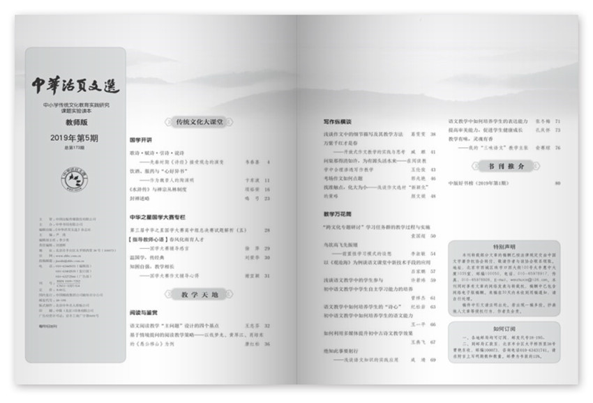 《中華活頁(yè)文選》雜志傳承創(chuàng)刊50多年來(lái)“文選”特色,以?xún)?yōu)美、正面、高品質(zhì)的選文在中小學(xué)師生中具有良好口碑。中華國(guó)學(xué)板塊仰仗中華書(shū)局國(guó)學(xué)實(shí)力,形成了文本準(zhǔn)確、注譯嚴(yán)謹(jǐn)、講解淺易的傳統(tǒng)。